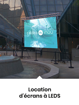 | Location d'écran géant extérieur de LEDs de 11,6m2 (4,032m x 2,88m) de haute luminosité (6.000 nits) et de haute définition (6mm de pitch). Système de sonorisation et système de reproduction de films. |