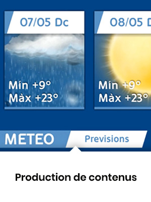 Production et gestion de contenusComTV installe son propre logiciel de reproduction et de gestion de contenus, pour une gestion intégrale de la liste de reproduction, nous mettons en place la configuration nécessaire pour la reproduction et la gestion à distance des contenus et la maintenance technique préventive et corrective. |