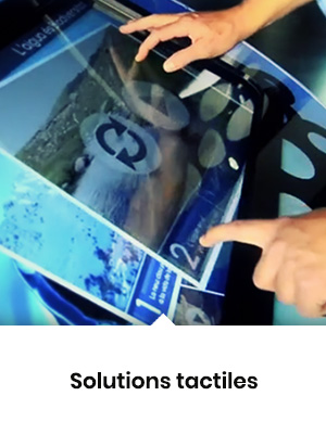 Tous les équipements audiovisuels (écrans tactiles, triples projections, lecteurs, moniteurs vidéo, ..) fournis et installés par ComTV ainsi que la production et la mise en œuvre de toutes les vidéos et contenus interactifs et dynamiques (avec code de programmation qui capture les données Internet) et les applications pour tablettes.